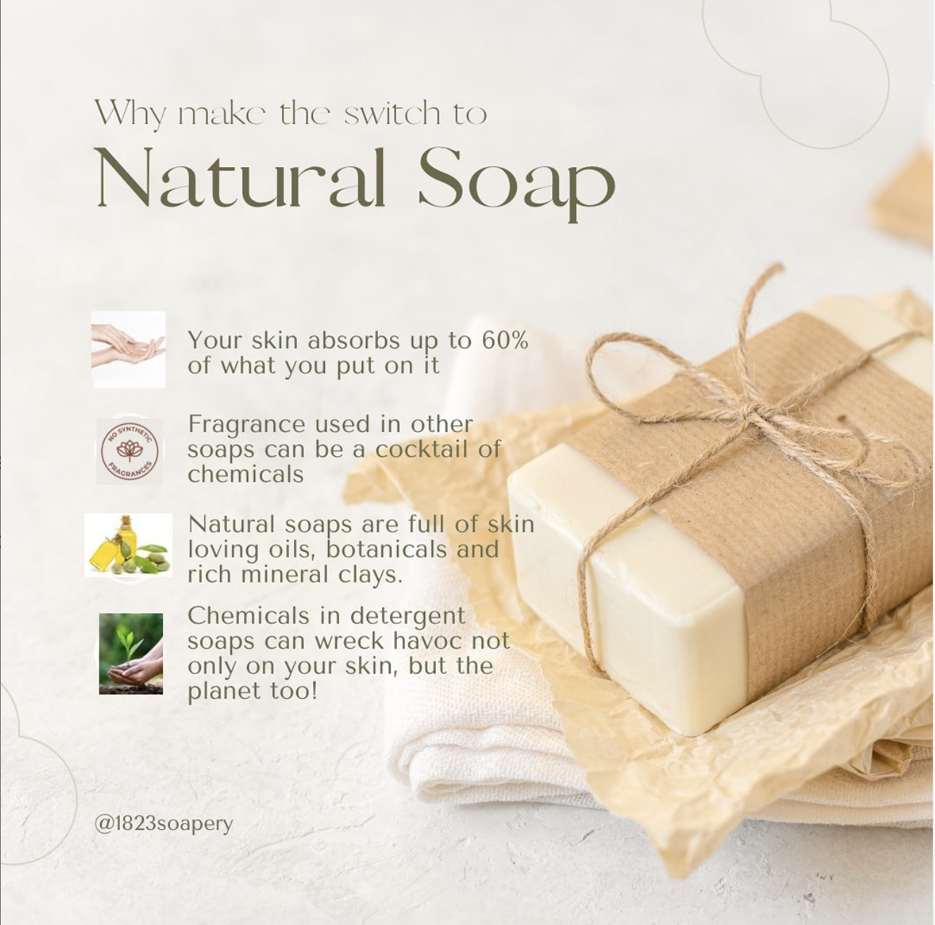 Discover the essence of radiant skin with 1823 Soapery, where nature meets luxury. Our artisanal creations are meticulously crafted with the finest ingredients, ensuring a spa-like experience in every use. Elevate your skincare routine and embrace the beauty of natural ingredients tailored to pamper your skin. With 1823 Soapery, your journey to healthier, glowing skin begins today.